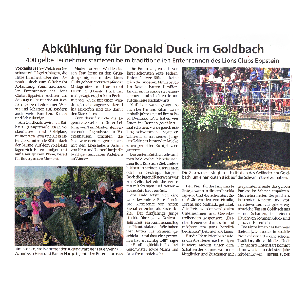 Abkühlung für Donald Duck im Goldbach (Höchster Kreisblatt)